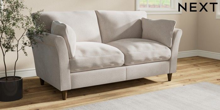 7.3.1 Buy Hartley Relaxed Sit 3 Seater Small Sofa Chunky Chenille Oyster Low Conical - Mid from the Next UK online shop