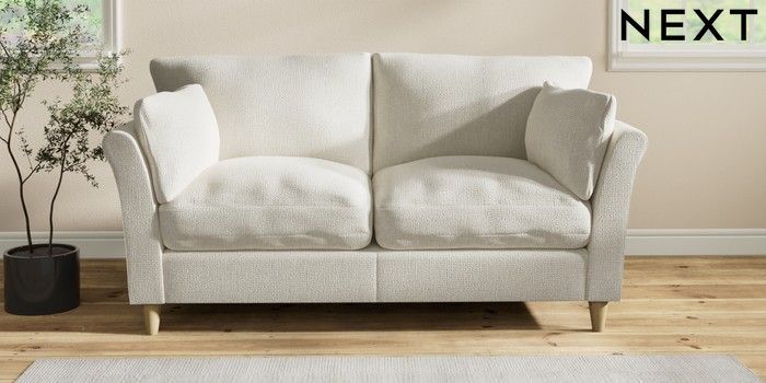 7.2.10 Buy Hartley Relaxed Sit 3 Seater Small Sofa Chunky Texture Oyster Low Conical - Light from the Next UK online shop Click here to use our accessible website