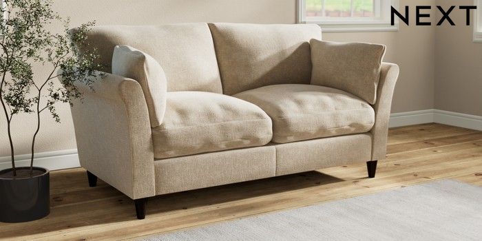 7.3.1 Buy Hartley Relaxed Sit 3 Seater Small Sofa Chunky Weave Cream Low Conical - Dark from the Next UK online shop
