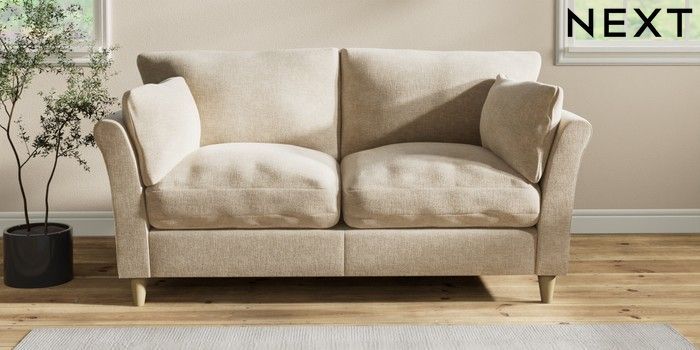 7.2.10 Buy Hartley Relaxed Sit 3 Seater Small Sofa Chunky Weave Cream Low Conical - Light from the Next UK online shop Click here to use our accessible website