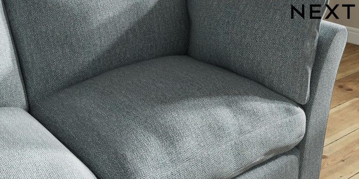 7.3.1 Buy Hartley Relaxed Sit 3 Seater Small Sofa Chunky Weave Mid Blue Low Conical - Dark from the Next UK online shop