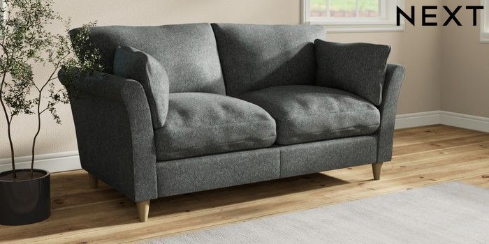 7.3.1 Buy Hartley Relaxed Sit 3 Seater Small Sofa Cotswold Chenille Dark Grey Low Conical - Light from the Next UK online shop
