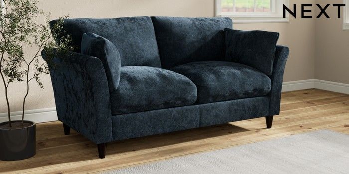 7.3.1 Buy Hartley Relaxed Sit 3 Seater Small Sofa Distressed Velour Midnight Blue Low Conical - Dark from the Next UK online shop