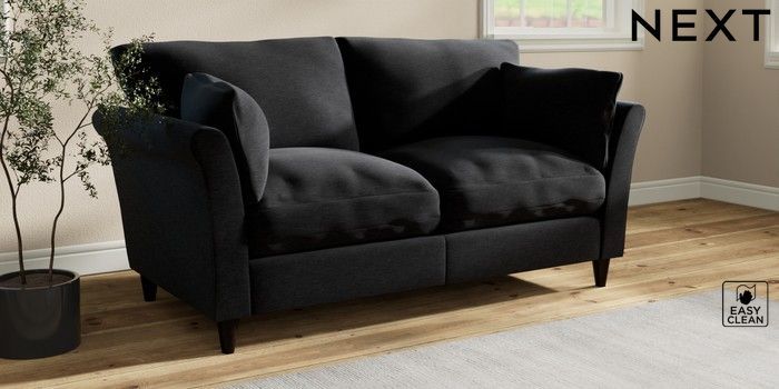 7.3.1 Buy Hartley Relaxed Sit 3 Seater Small Sofa Fine Chenille Easy Clean Black Low Conical - Dark from the Next UK online shop