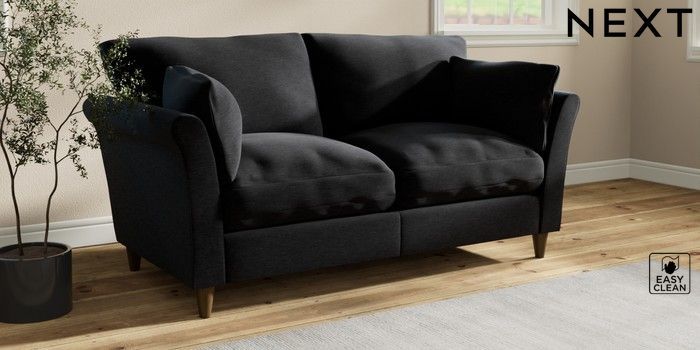 7.3.1 Buy Hartley Relaxed Sit 3 Seater Small Sofa Fine Chenille Easy Clean Black Low Conical - Mid from the Next UK online shop
