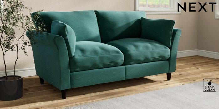 7.3.1 Buy Hartley Relaxed Sit 3 Seater Small Sofa Fine Chenille Easy Clean Dark Juniper Green Low Conical - Dark from the Next UK online shop