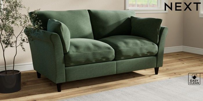 7.3.1 Buy Hartley Relaxed Sit 3 Seater Small Sofa Fine Chenille Easy Clean Mid Khaki Green Low Conical - Dark from the Next UK online shop