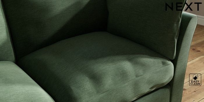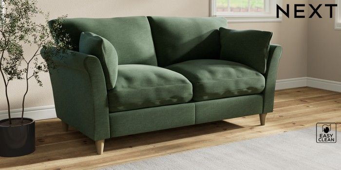 7.3.1 Buy Hartley Relaxed Sit 3 Seater Small Sofa Fine Chenille Easy Clean Mid Khaki Green Low Conical - Light from the Next UK online shop