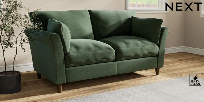 7.3.1 Buy Hartley Relaxed Sit 3 Seater Small Sofa Fine Chenille Easy Clean Mid Khaki Green Low Conical - Mid from the Next UK online shop