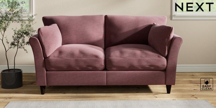 7.3.1 Buy Hartley Relaxed Sit 3 Seater Small Sofa Fine Chenille Easy Clean Mid Mulberry Purple Low Conical - Dark from the Next UK online shop Click here to use our accessible website
