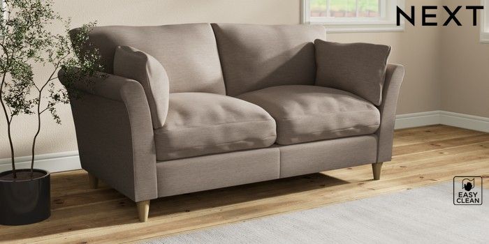 7.3.1 Buy Hartley Relaxed Sit 3 Seater Small Sofa Fine Chenille Easy Clean Mid Taupe Brown Low Conical - Light from the Next UK online shop Click here to use our accessible website