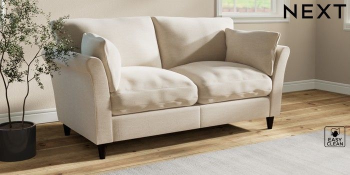 7.3.1 Buy Hartley Relaxed Sit 3 Seater Small Sofa Fine Chenille Easy Clean Oyster Low Conical - Dark from the Next UK online shop