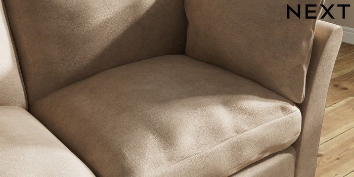 7.3.1 Buy Hartley Relaxed Sit 3 Seater Small Sofa Luxe Chenille Mid Camel Beige Low Conical - Dark from the Next UK online shop
