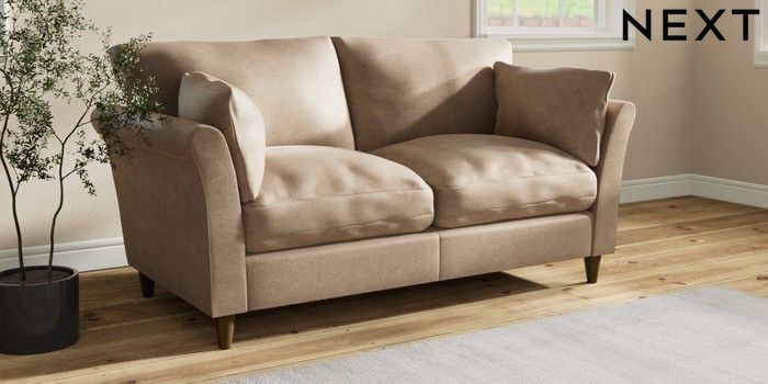7.3.1 Buy Hartley Relaxed Sit 3 Seater Small Sofa Luxe Chenille Mid Camel Beige Low Conical - Mid from the Next UK online shop