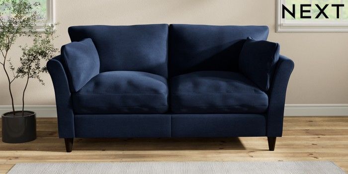 7.2.10 Buy Hartley Relaxed Sit 3 Seater Small Sofa Luxe Chenille Navy Blue Low Conical - Dark from the Next UK online shop Click here to use our accessible website