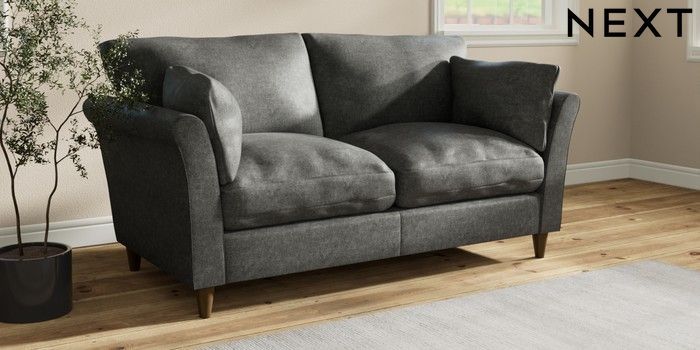 7.3.1 Buy Hartley Relaxed Sit 3 Seater Small Sofa Plush Chenille Dark Grey Low Conical - Mid from the Next UK online shop