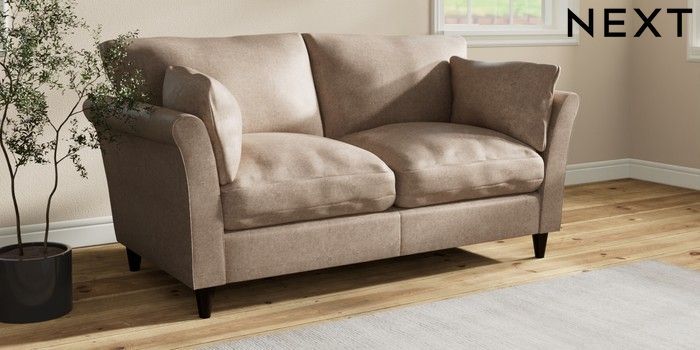 7.3.1 Buy Hartley Relaxed Sit 3 Seater Small Sofa Plush Chenille Mid Natural Low Conical - Dark from the Next UK online shop