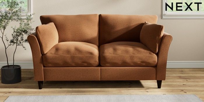7.2.10 Buy Hartley Relaxed Sit 3 Seater Small Sofa Ripple Chenille Mid Rust Brown Low Conical - Dark from the Next UK online shop Click here to use our accessible website