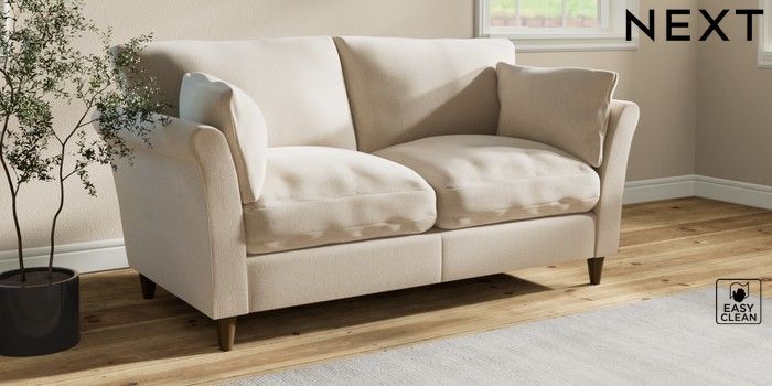 7.3.1 Buy Hartley Relaxed Sit 3 Seater Small Sofa Tweedy Blend Easy Clean Oyster Low Conical - Mid from the Next UK online shop