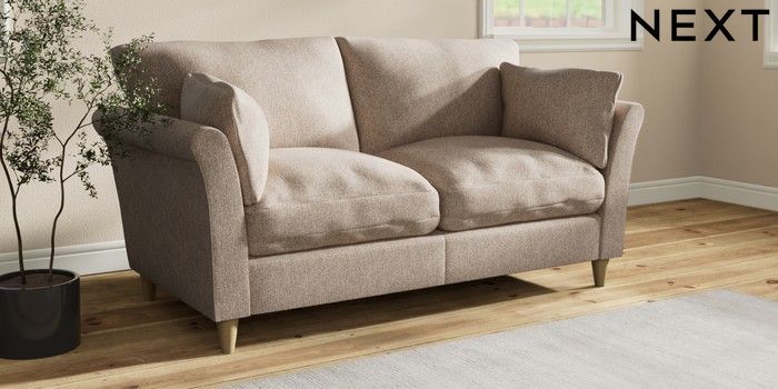 7.3.1 Buy Hartley Relaxed Sit 3 Seater Small Sofa Tweedy Chenille Mid Natural Low Conical - Light from the Next UK online shop