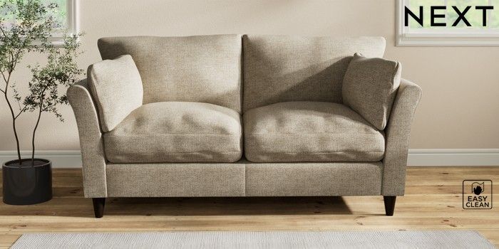 7.2.10 Buy Hartley Relaxed Sit 3 Seater Small Sofa Woven Chenille Easy Clean Mid Natural Low Conical - Dark from the Next UK online shop Click here to use our accessible website