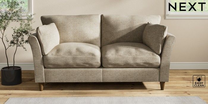 7.2.10 Buy Hartley Relaxed Sit 3 Seater Small Sofa Woven Chenille Easy Clean Mid Natural Low Conical - Mid from the Next UK online shop Click here to use our accessible website