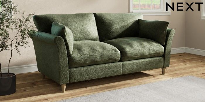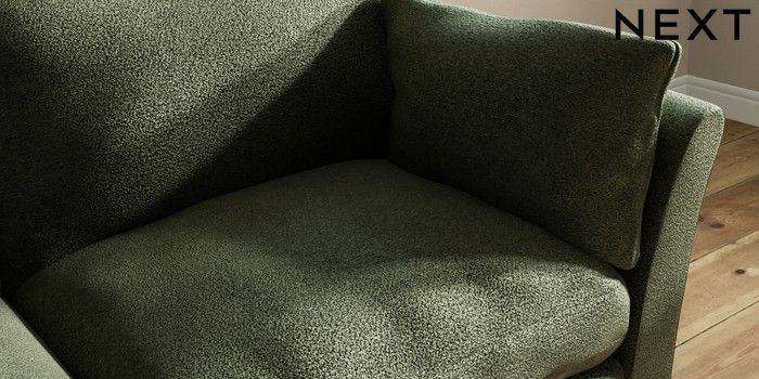 7.3.1 Buy Hartley Relaxed Sit 3 Seater Sofa Boucle Chenille Dark Moss Green Low Conical - Light from the Next UK online shop