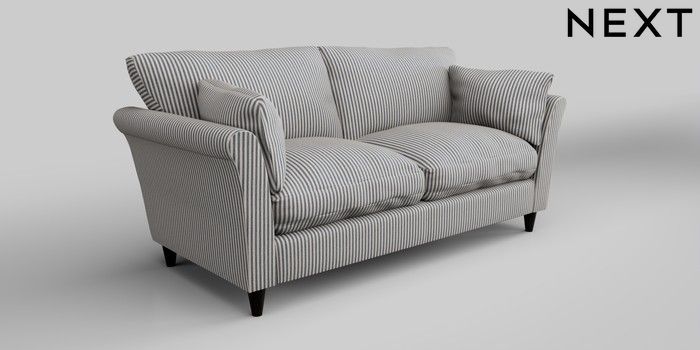 6.12.1 Buy Hartley Relaxed Sit 3 Seater Sofa Chenille Stripe Slate Blue Low Conical - Dark from the Next UK online shop Click here to use our accessible website