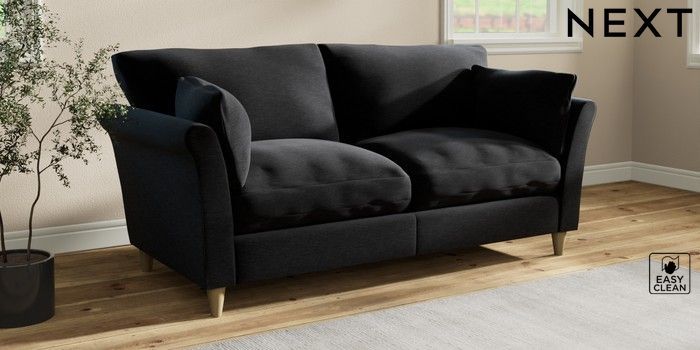 7.3.1 Buy Hartley Relaxed Sit 3 Seater Sofa Fine Chenille Easy Clean Black Low Conical - Light from the Next UK online shop