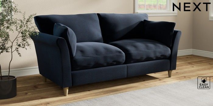 7.3.1 Buy Hartley Relaxed Sit 3 Seater Sofa Fine Chenille Easy Clean Dark Navy Blue Low Conical - Light from the Next UK online shop