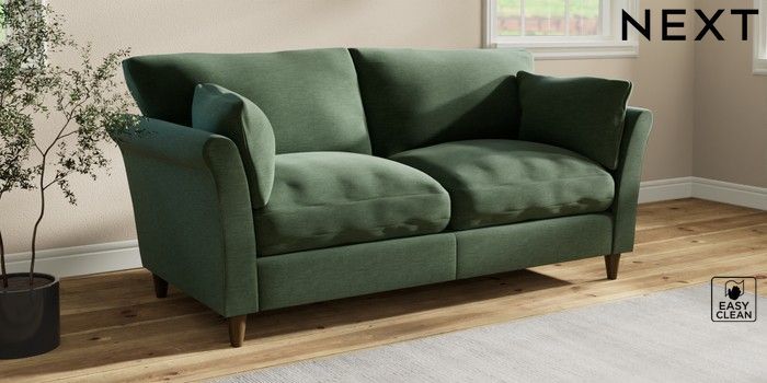 7.3.1 Buy Hartley Relaxed Sit 3 Seater Sofa Fine Chenille Easy Clean Mid Khaki Green Low Conical - Mid from the Next UK online shop