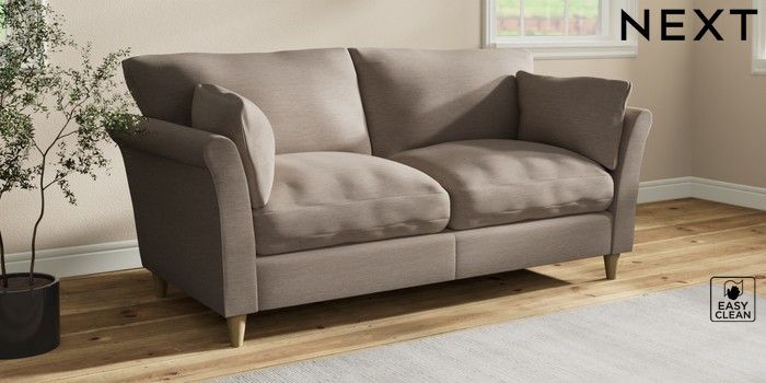 7.3.1 Buy Hartley Relaxed Sit 3 Seater Sofa Fine Chenille Easy Clean Mid Taupe Brown Low Conical - Light from the Next UK online shop