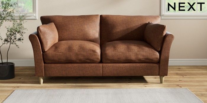 7.3.1 Buy Hartley Relaxed Sit 3 Seater Sofa Monza Faux Leather Easy Clean Chestnut Brown Low Conical - Light from the Next UK online shop Click here to use our accessible website