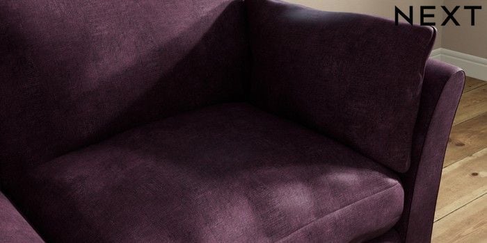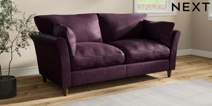 7.3.1 Buy Hartley Relaxed Sit 3 Seater Sofa Plush Chenille Dark Plum Purple Low Conical - Mid from the Next UK online shop