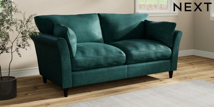 7.3.1 Buy Hartley Relaxed Sit 3 Seater Sofa Plush Chenille Dark Teal Green Low Conical - Dark from the Next UK online shop