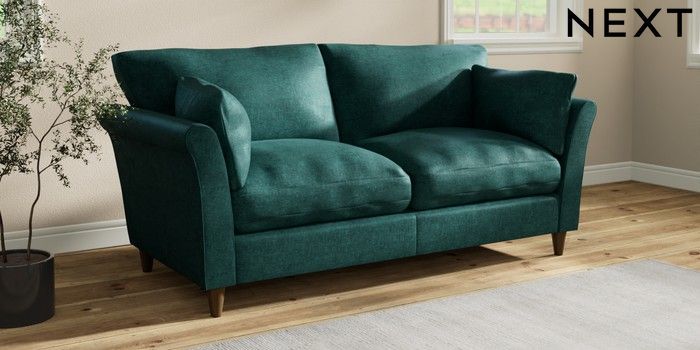 7.3.1 Buy Hartley Relaxed Sit 3 Seater Sofa Plush Chenille Dark Teal Green Low Conical - Mid from the Next UK online shop