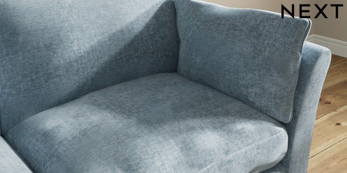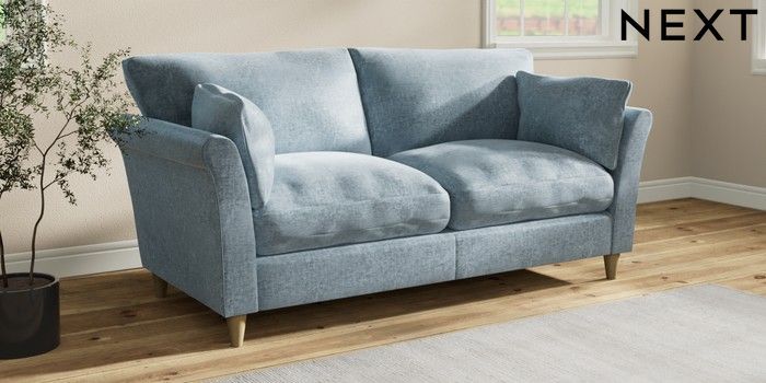 7.3.1 Buy Hartley Relaxed Sit 3 Seater Sofa Plush Chenille Light Blue Low Conical - Light from the Next UK online shop