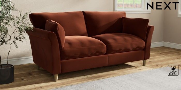 7.3.1 Buy Hartley Relaxed Sit 3 Seater Sofa Plush Velvet Easy Clean Ginger Orange Low Conical - Light from the Next UK online shop