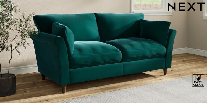 7.3.1 Buy Hartley Relaxed Sit 3 Seater Sofa Plush Velvet Easy Clean Juniper Green Low Conical - Mid from the Next UK online shop