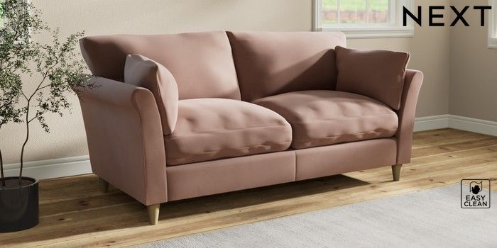 7.3.1 Buy Hartley Relaxed Sit 3 Seater Sofa Plush Velvet Easy Clean Mid Natural Low Conical - Light from the Next UK online shop