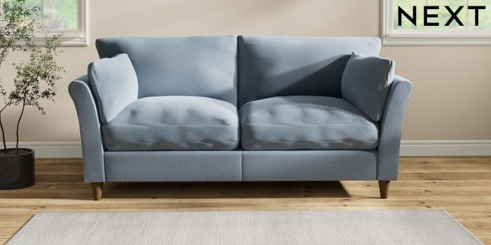 7.2.10 Buy Hartley Relaxed Sit 3 Seater Sofa Relaxed Linen Look Mid Blue Low Conical - Mid from the Next UK online shop Click here to use our accessible website
