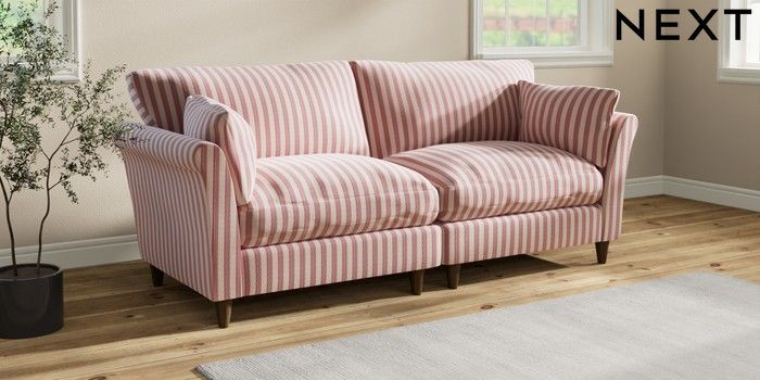 7.3.1 Buy Hartley Relaxed Sit 4 Seater Sofa Bold Chenille Stripe Dark Pink Low Conical - Mid from the Next UK online shop