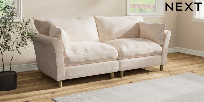 7.3.1 Buy Hartley Relaxed Sit 4 Seater Sofa Boucle Chenille Oyster Low Conical - Light from the Next UK online shop