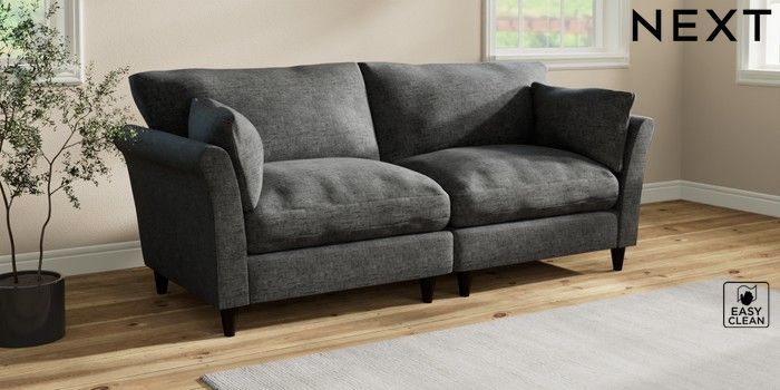 7.3.1 Buy Hartley Relaxed Sit 4 Seater Sofa Boucle Weave Easy Clean Charcoal Grey Low Conical - Dark from the Next UK online shop