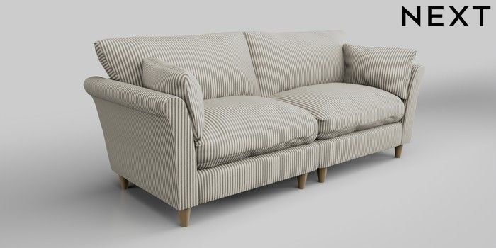 6.12.1 Buy Hartley Relaxed Sit 4 Seater Sofa Chenille Stripe Moss Green Low Conical - Light from the Next UK online shop Click here to use our accessible website
