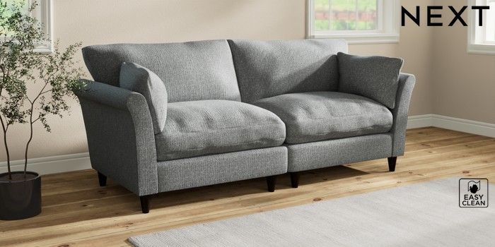 7.3.1 Buy Hartley Relaxed Sit 4 Seater Sofa Chunky Boucle Easy Clean Mid Grey Low Conical - Dark from the Next UK online shop