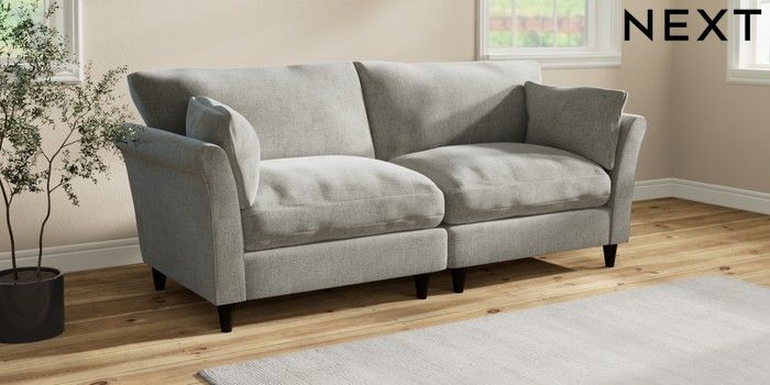 7.3.1 Buy Hartley Relaxed Sit 4 Seater Sofa Chunky Chenille Light Grey Low Conical - Dark from the Next UK online shop