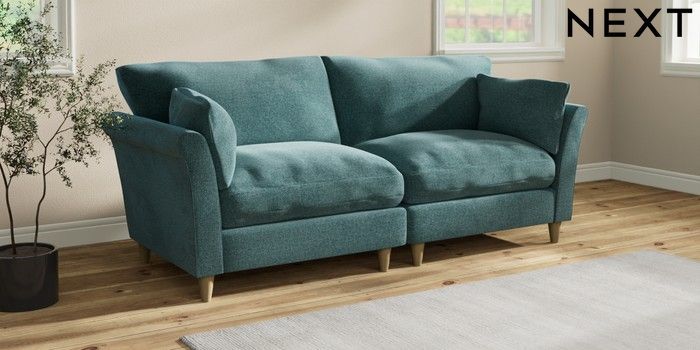 7.3.1 Buy Hartley Relaxed Sit 4 Seater Sofa Chunky Chenille Mid Teal Green Low Conical - Light from the Next UK online shop