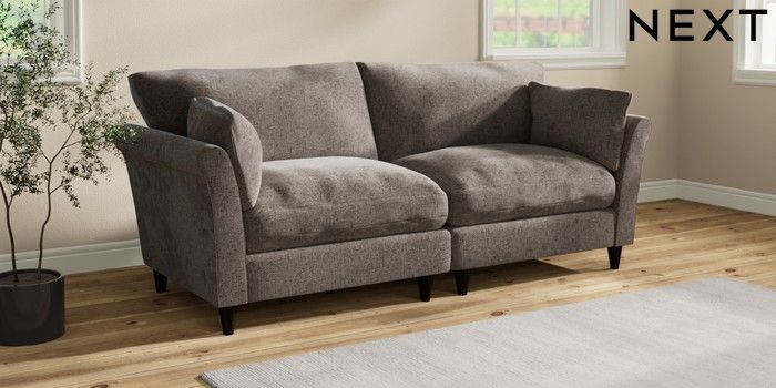 7.3.1 Buy Hartley Relaxed Sit 4 Seater Sofa Chunky Chenille Mink Brown Low Conical - Dark from the Next UK online shop