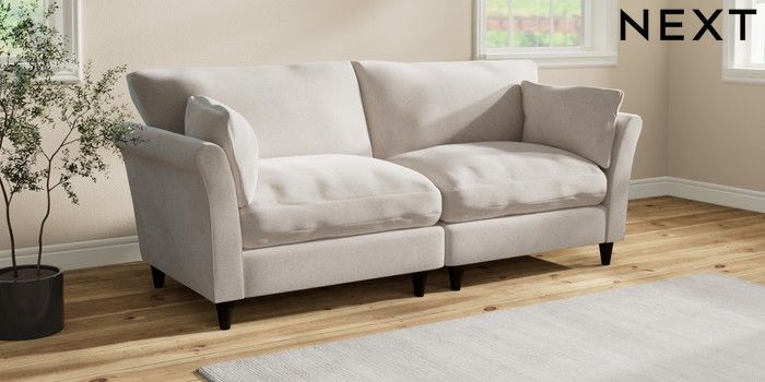 7.3.1 Buy Hartley Relaxed Sit 4 Seater Sofa Chunky Chenille Oyster Low Conical - Dark from the Next UK online shop